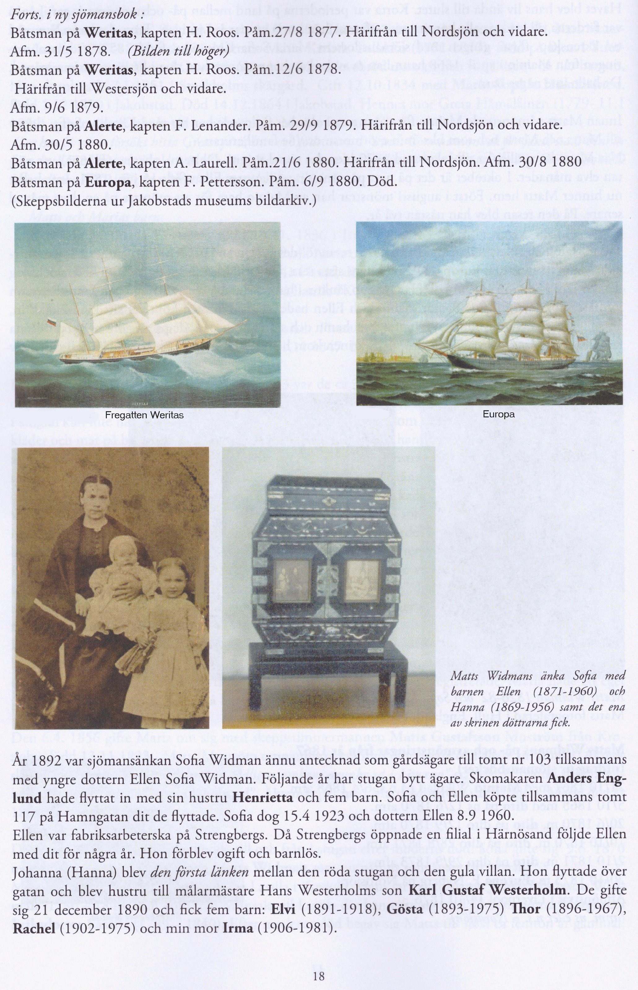 Matts Widman was deck boss on the ship Weritas with Captain H. Roos from 12 June 1878. From Jakobstad to the "West Sea" and beyond. He disembarked on 9 June 1879.