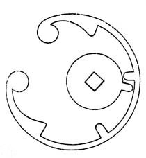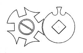 45. Stopwork with a Maltese cross, Fig. 15, is the most frequently used and preferred for watches. It is so well-known it does not need to be described. It is true that careless execution of this stopwork, which we very often find in inferior grades of watches, is a source of annoyance and trouble for the repairer and the owner. Do not be mistaken, Maltese stopwork will not stand poor execution or carelessness; but if it is well made it has the strength to withstand any test. With well designed tools its correct production is not difficult.