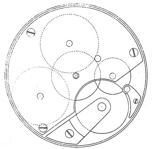 The 3rd wheel in work of this kind must go on the dial side of the pillar plate under the fusee wheel, in all other details there is no difference from the usual arrangement of the parts.