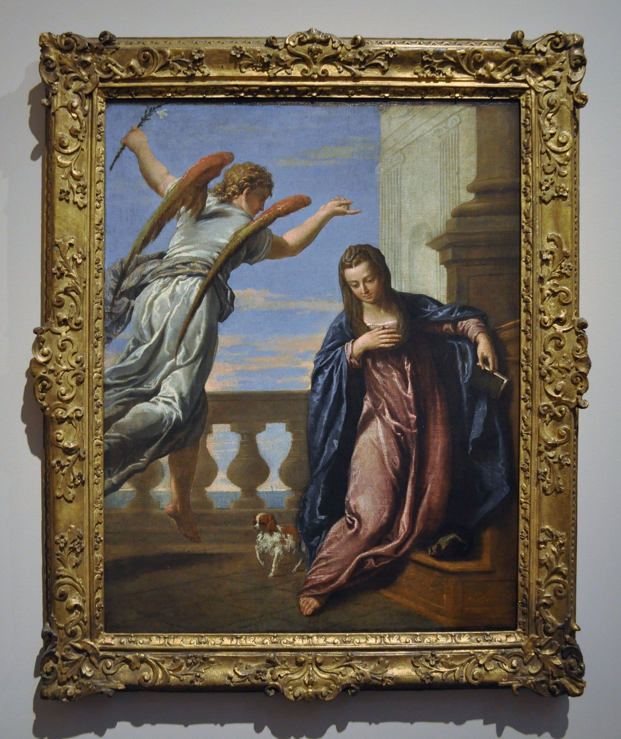 Of the great Venetian painters of the sixteenth century, Veronese was the most systematic and subtle in his exploration of the play of light upon color. While he based his paintings on classical models, his palette encompassed an unprecedented range of color which was enhaned by his natural use of light. A small altarpiece, probably for private devotion, this picture sets the Virgin and the archangel Gabriel in a handsome loggia, likely modeled after an actual villa. In contrast to the simplified figures and uniform palette, the energetic highlights course across the surface and infuse the scene with vitality.