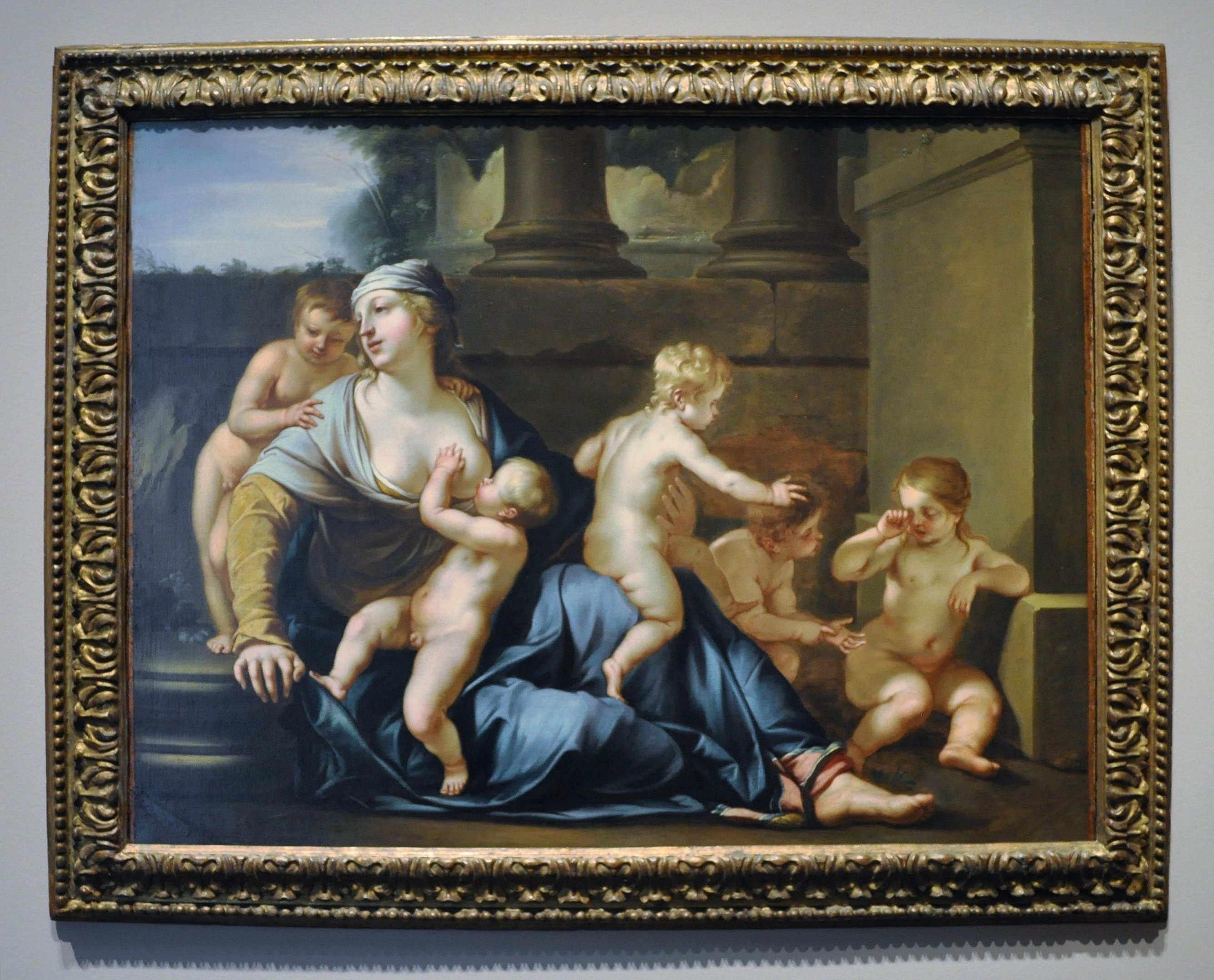 Traditionally called the “French Titian,” though really more indebted to the Venetian master Veronese, Blanchard infused relatively simple scenes and figure types based on classical models with a soft luminosity, tactile paint handling, and sensuous appeal. The personification of Charity, which offered a noble pretext for rendering images of alluring female beauty, was a favorite of Blanchard and his patrons. This is one of several interpretations of the subject by the artist and one of six known versions of this particular composition.
