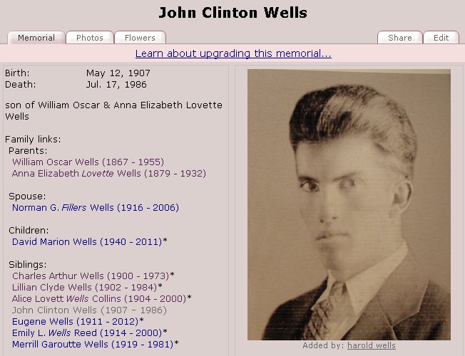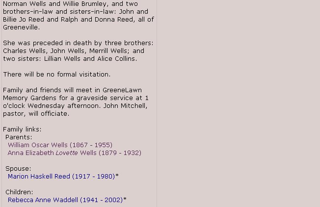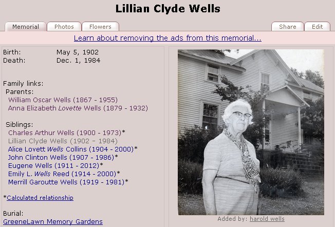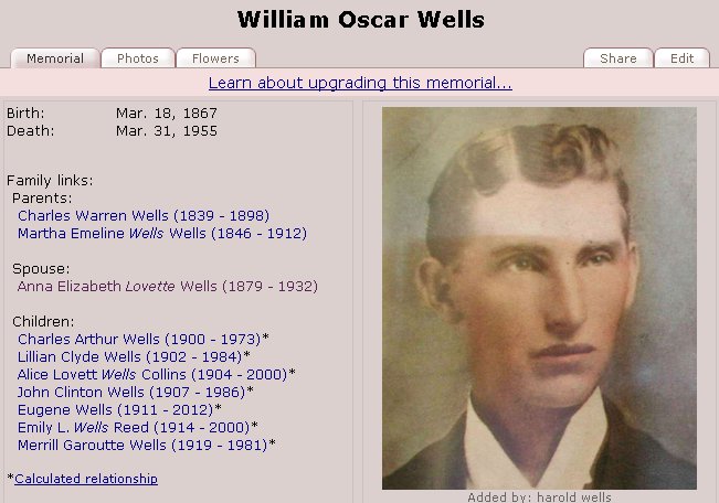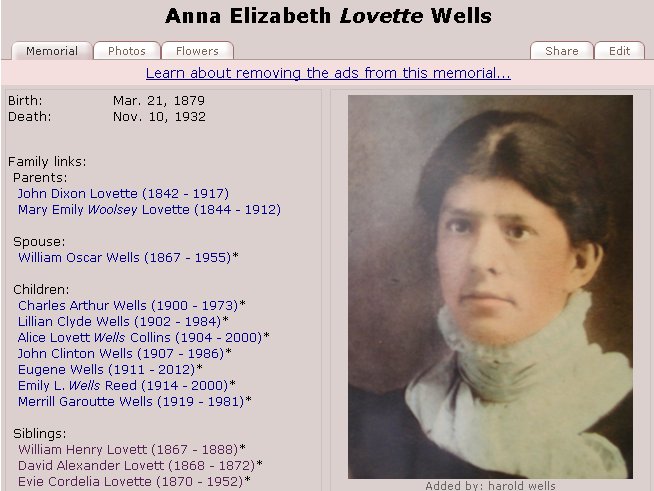 Children of William Oscar Wells and Anna Elizabeth Lovette Wells: