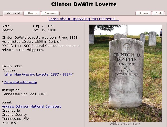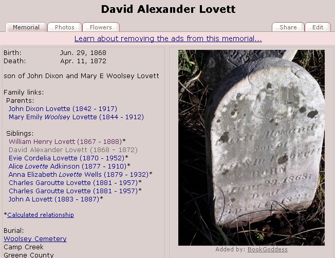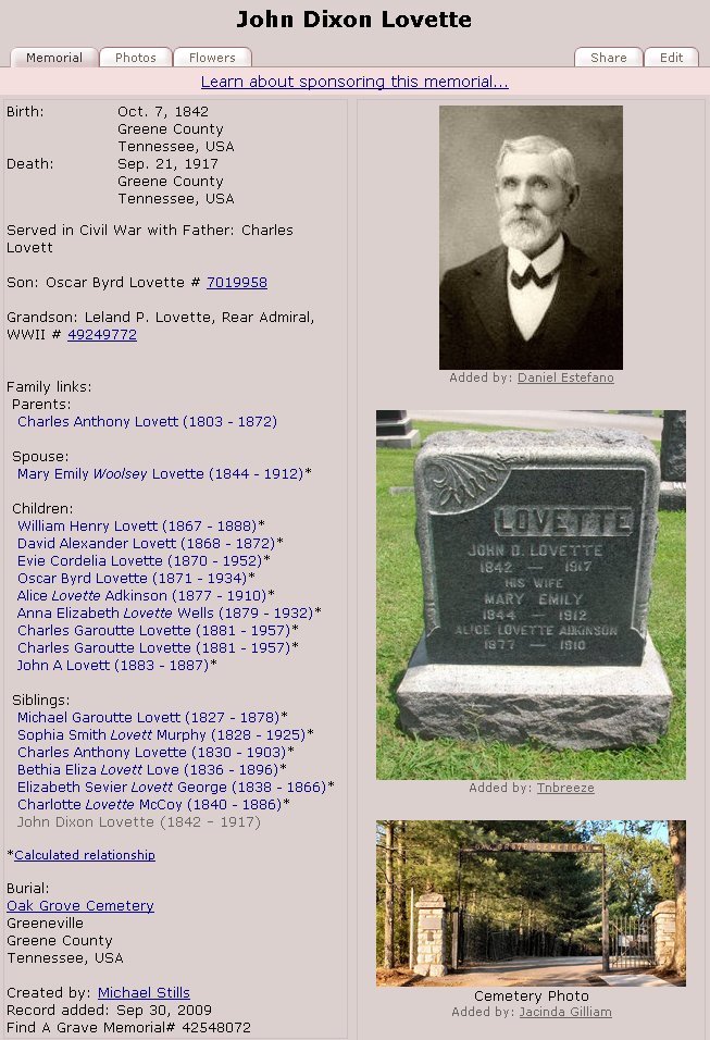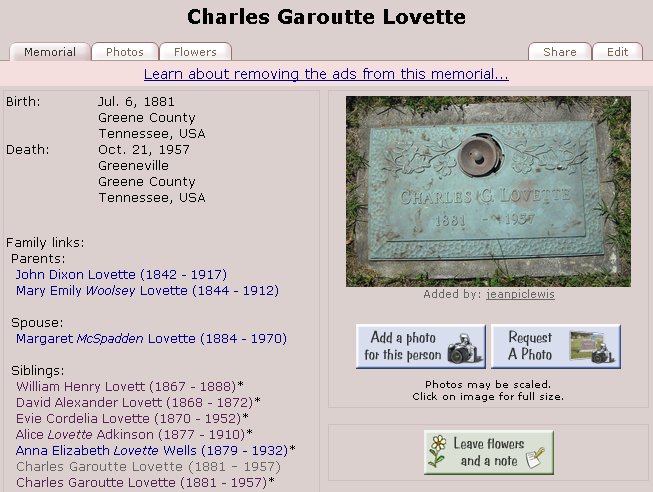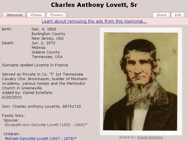 Son of Charles Lovette and Eliza Garoutte Lovette: