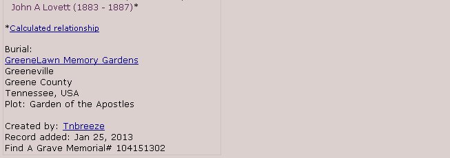 Lovettes and Wells in Greeneville, Tennessee.