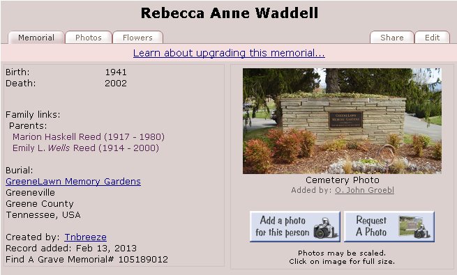 Daughter and granddaughter of Herbert and Anne Waddell: