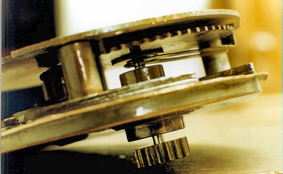 than the latter. I have used springs from old mechanical typewriters and adding machines without any problems. There is, however, one very important problem I have encountered with these springs. They are all three or more times more powerful than they need to be, and the spring on the chime activating lever causes premature wear of the centershaft bushing towards the left (#9), so that the hands may touch the dial on the left side and the glass on the right side.