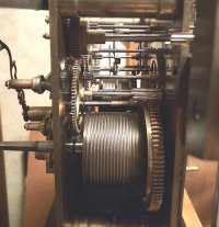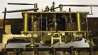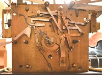 In the dog-eat-dog world of tubular bell grandfather clocks, there were numerous brands. Many high-grade clocks of comparable quality and of various nationalities, mainly England, Germany, and the United States, were produced. Among them, Elliott, with the original patent for the tubular bells, was unquestionably top dog. Most manufacturers were trying to develop quality products that were affordable to more people, in order to increase sales, but Elliott went in the opposite direction, making their products deliberately expensive and exclusive for the privileged few. The original owner of this clock could well have paid as much for this clock to decorate his château in about 1910 as he did for his weekend cottage in Surrey. The parts in this clock are large, heavy, well finished, and made of the finest materials. Once the patent for the tubular bells ended, other manufacturers were able to produce their own tubes and compete in the top end of this luxury market. In the United States, Herschede was the main competitor. The Herschede #1 movement is comparable to the Elliott on this page. The Elliott was photographed during disassembly.