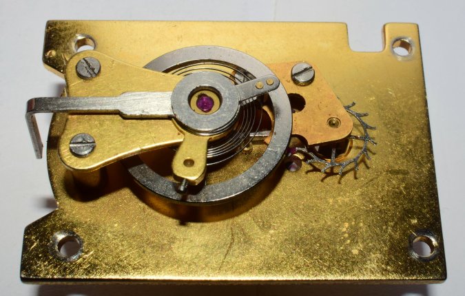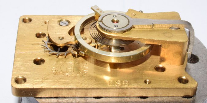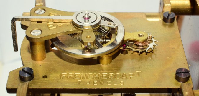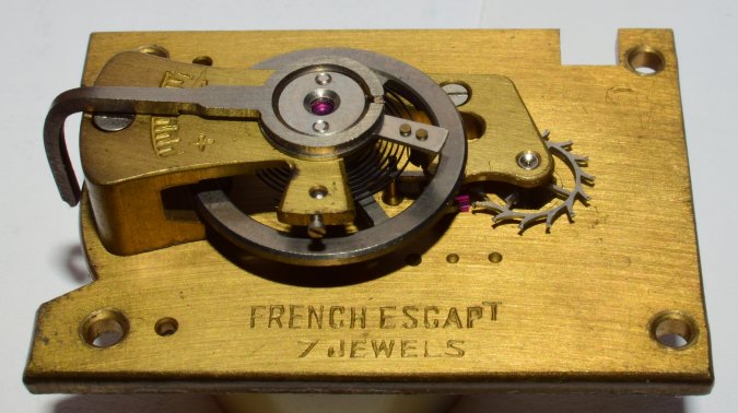 The most commonly used platform was the 7 jewel l'Épée platform, like this one from the late 1960s. Elliott clocks with this platform keep very accurate time. |