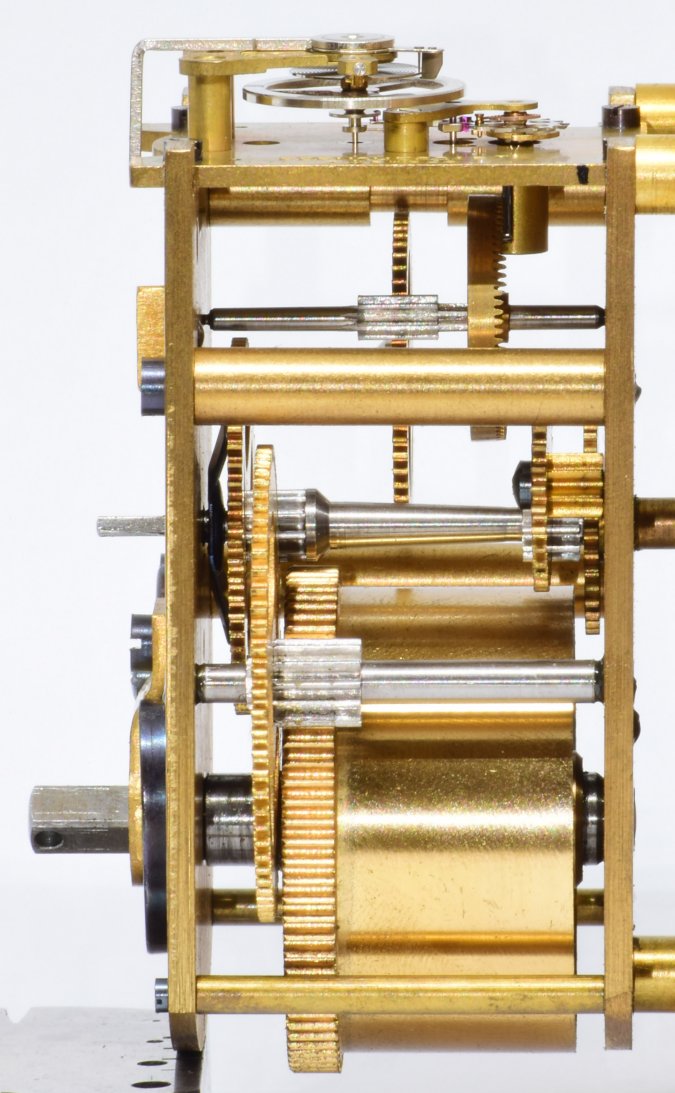 The last platform is mounted onto a movement that provides time only, which are more common than the chiming clocks, because the chiming clocks were even more expensive. |