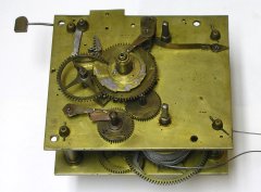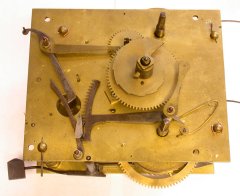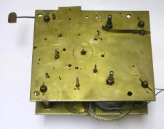 Here is an alarm mechanism on another English grandfather clock of the same vintage, ca. 1790. The basic design of this alarm goes back by maybe a thousand years!