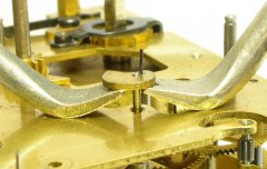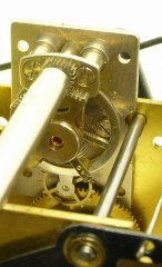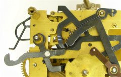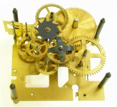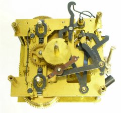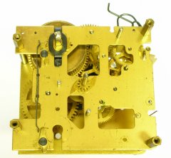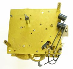 The new Hermle ship's bell clocks have platforms with plastic escape wheel and pallets. I avoid clocks with escapement parts made of plastic. The second wheel bushing on the front plate of the Hermle is very close to the edge of the plate, making the replacement of the bushing difficult. If you buy a new mechanical ship's bell clock that is not a Chelsea, it probably has a Hermle mechanism.