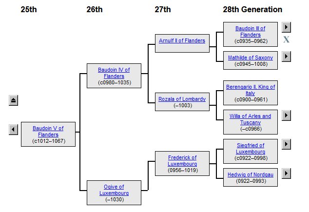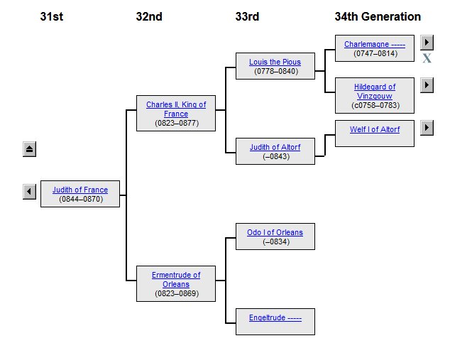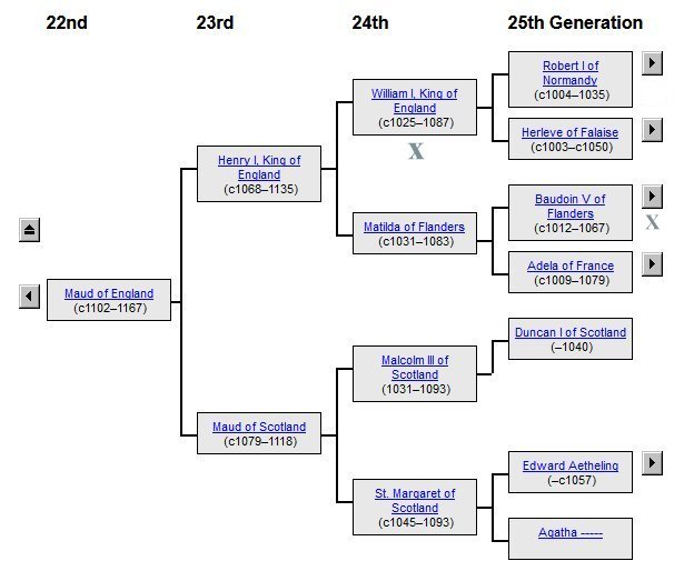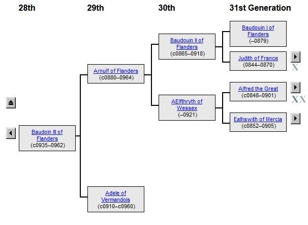 William Cecil Headrick (1904-1995) was a descendant of Elizabeth Hill Carter (1731-1760), who was a descendant of William the Conqueror, Ælfred the Great of Wessex and Charlemagne, as these images show to confirm the data from another source:
