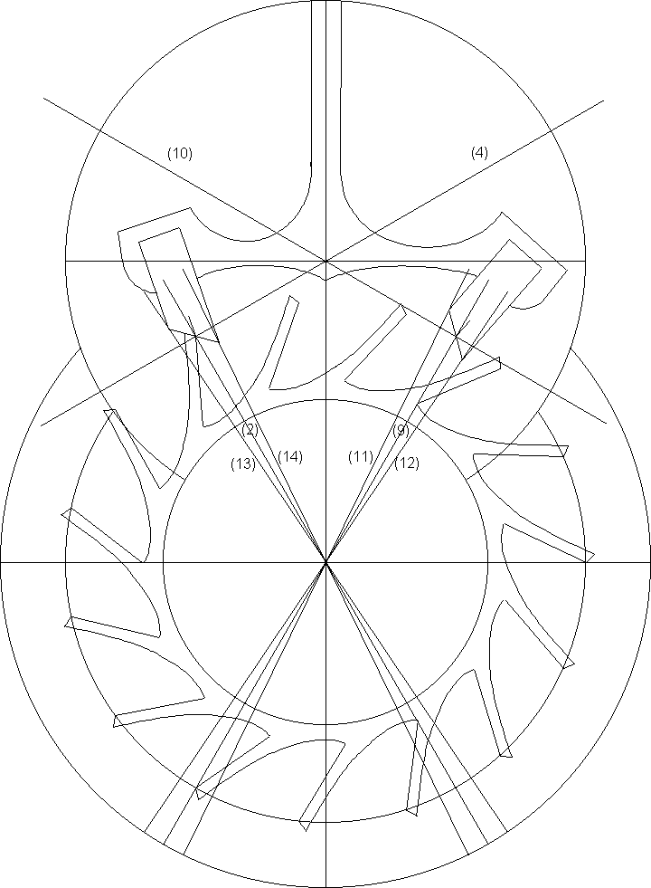 lines (14) and (15) intersect: lines (16) and (17) are parallel. Rotate line (17) by 90º to