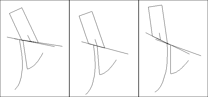 to other positions and change its shape until you trace a path for a new curve more like the path of the pallet. If you draw the lines on the tooth next to the