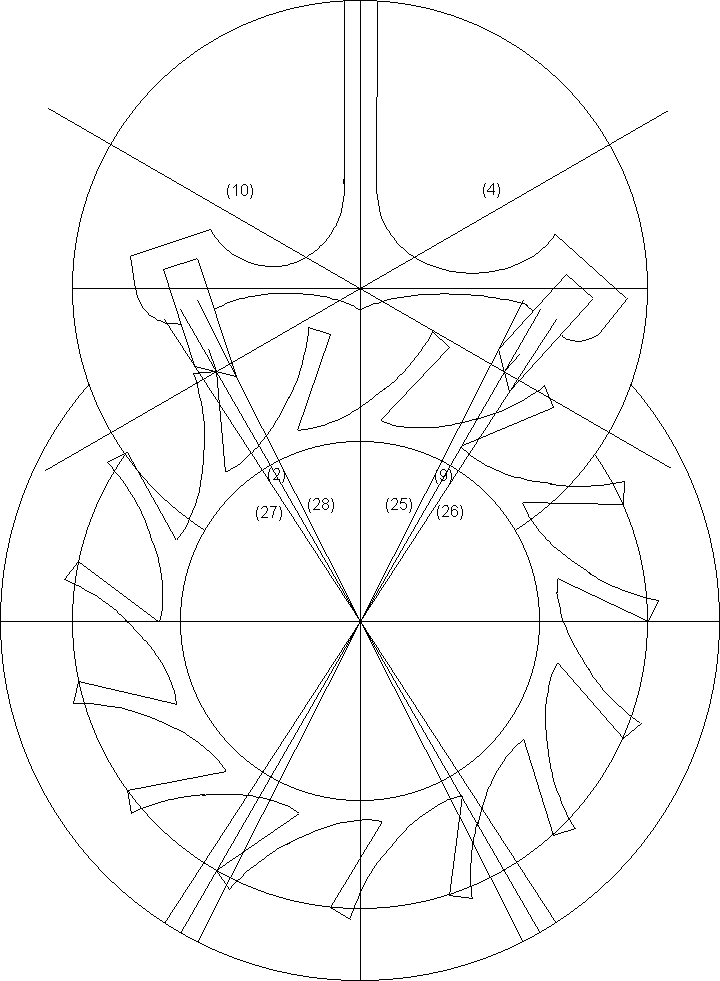 lines by 24º for every tooth in between, that is, by 72º counterclockwise. I drew a new