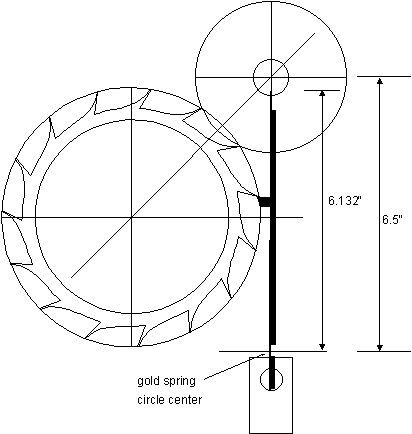 below the center of the impulse pallet's circle. The longer the gold spring's line, the