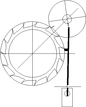 escape teeth. Then draw the detent pallet on the detent arm: place it just below the tooth,