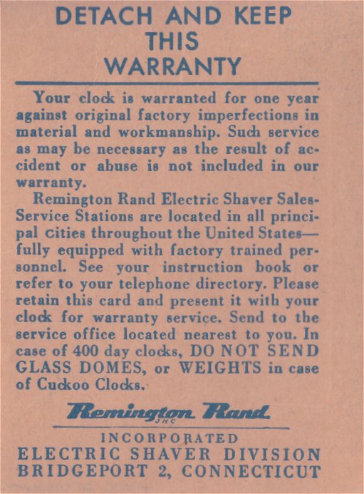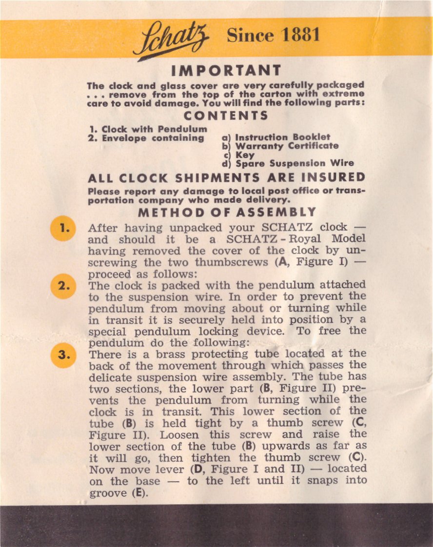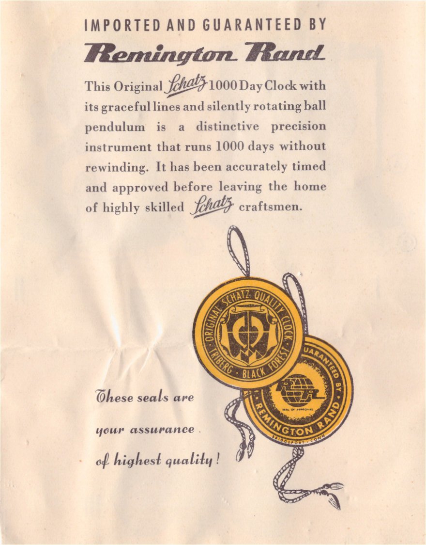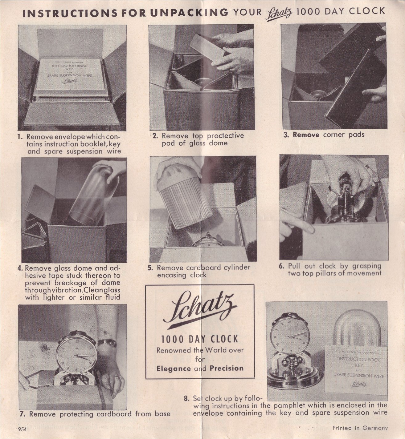 Schatz anniversary clock instructions, 1000 day and 400 day clocks in 1955.