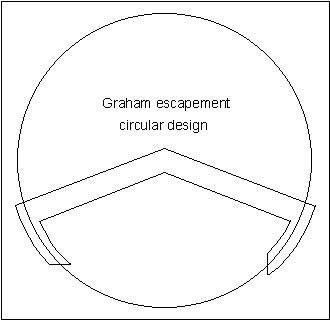 In 1715, George Graham (1673-1751) of London is said to have modified the anchor escapement to eliminate recoil, creating the deadbeat escapement, also called the Graham escapement. This has been the escapement of choice in almost all finer pendulum clocks since then. Graham modified the arm of each steel pallet so that the lower portion of each limb was based on the arc of a circle with its center at the axis of rotation of the pallets (see Fig. 5). The tip of each limb had a surface, the angle of which, based on force directions (as outlined above), was designed to provide an impulse to the pallet as the escape tooth slid across the surface of each tip. The escape tooth strikes the pallet above the tip on the lower portion of the limb (see Fig. 6), where the escape wheel is rotating clockwise and is about to strike the entrance pallet on the left side, above the impulse face. The surface that the escape tooth strikes is the locking face, since it prevents the escape wheel from rotating farther.