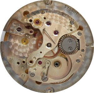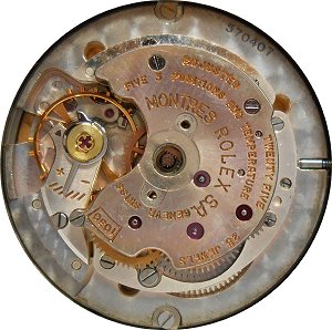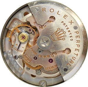 This Rolex 1030 is from about 1963 and arguably of similar quality to the Omega Constellation 551 on the preceding page. Both have unjeweled automatic rotors and blue hairsprings. The Rolex 1030 has a standard regulator, (not having the Microstellar adjustment screws), but it is still an officially certified Swiss chronometer. In the photos on the next page, you can see how the 1500 series Rolex mechanism was based on the 1000 series mechanism. The issue with vintage Rolex watches today is the lack of replacement parts available.